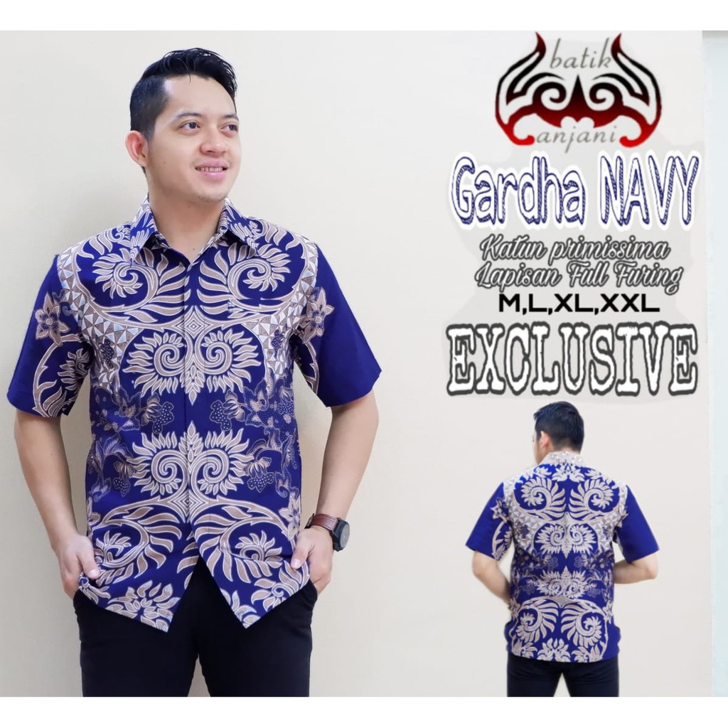 Name: Gardha Navy Kemeja Batik Pria Full Furing Katun Primisima Batik Solo Batik Pria Eksklusif Batik Biru