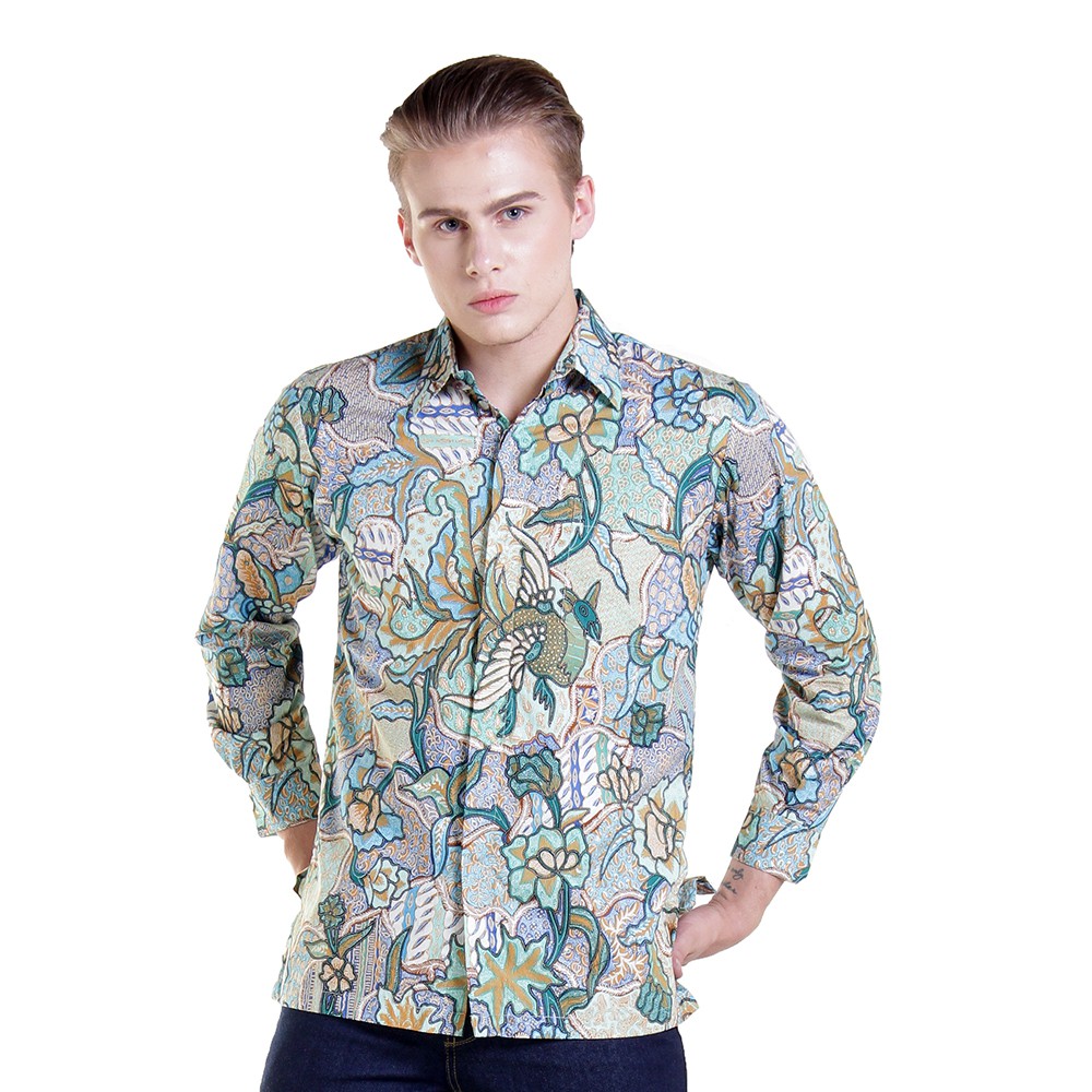 Rianty Batik Hem Lengan Pendek Batik Pria, Long sleeves shirt berbahan cotton yang didesain ethnic dalam motif batik dengan pointed collar, front hidden button opening, dan left chest pocket, sehingga sangat nyaman dan cocok digunakan untuk acara formal maupun nonformal.