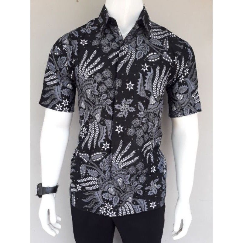 Name: Bswart Hrb026 Kenongo Kemeja Batik Lengan Pendek Manggar Abu Kemeja Batik Pria