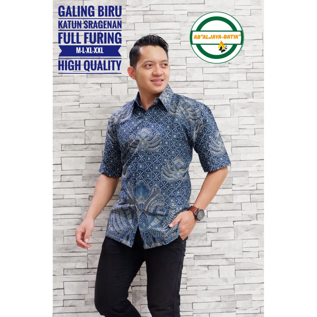 Name: Galing Biru Kemeja Batik Pria Eksklusif Lengan Pendek Berfuring Batik Solo Katun Primisima