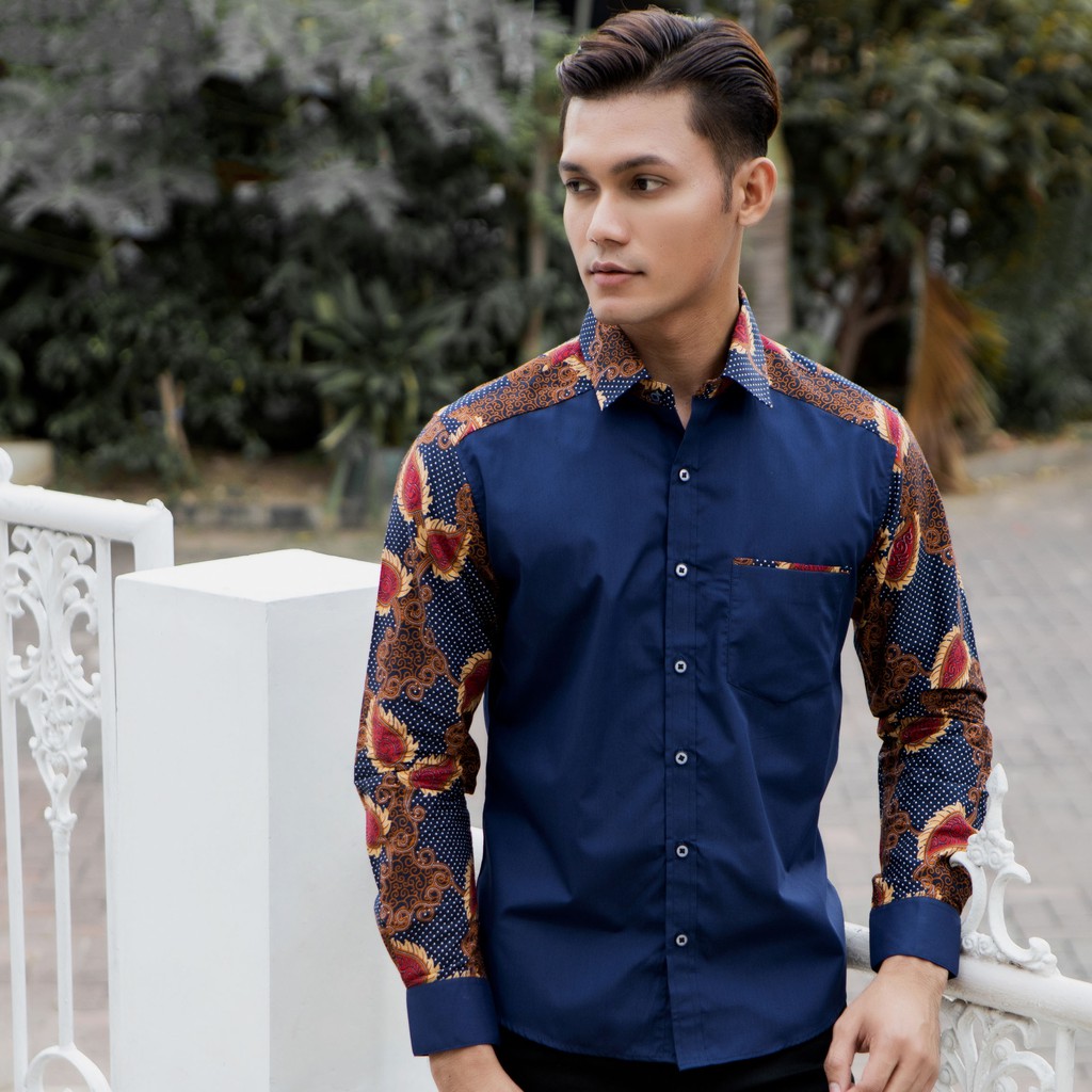 Name: Luigi Riccio Kemeja Batik Modern New Lengan Panjang Navy Series